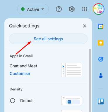 V zavihku, ki se odpre, kliknite “See all settings” oz. “Vse nastavitve”: