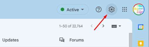V Gmail-u desno zgoraj kliknite na ikono zobnika: