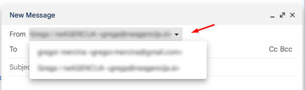 Pri pošiljanju e-mail sporočila lahko sedaj izbiramo iz katerega naslova bi ga radi poslali. Pri kreiranju novega sporočila kliknite na svoje ime ali e-poštni naslov v polju “From”, da odprete seznam možnih e-mail naslovov: