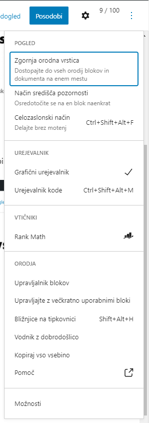 - priporočamo, da imate vklopljeno opcijo “Grafični urejevalnik”